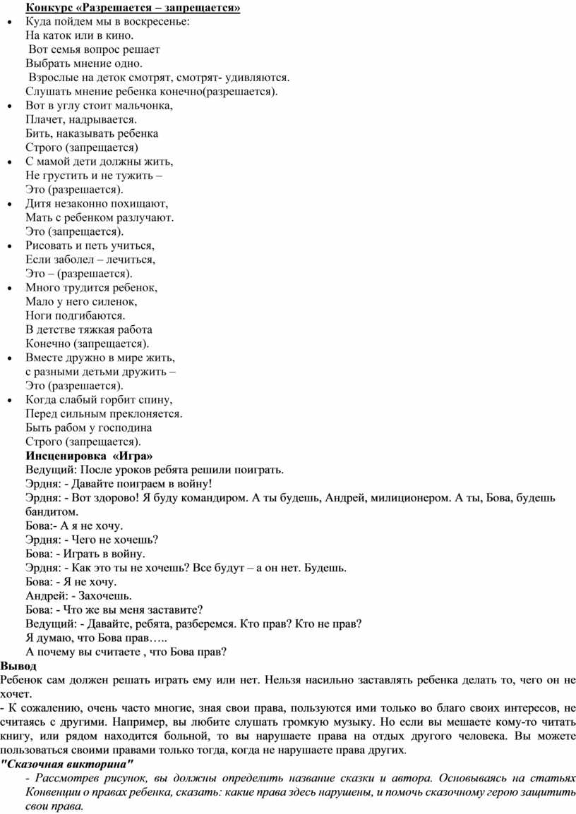Ведущий: - Давайте, ребята, разберемся. Кто прав? Кто не прав?