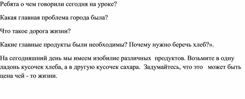 Ребята, а сколько кусочков хлебы мы едим за 1 прием пищи? А во время блокады на 1 ребенка выдавалось125 граммов — это была вся еда на день. Муки катастрофически не хватало, поэтому пекли блокадный хлеб.