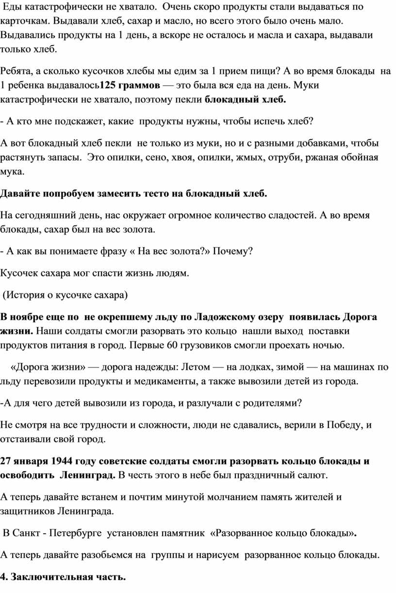 План классного часа «Блокада Ленинграда»
