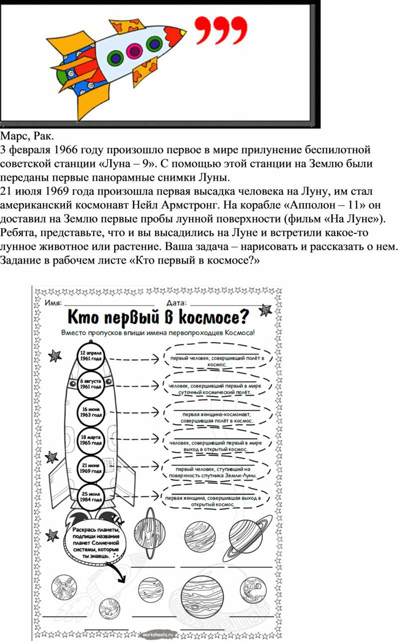 Задание в рабочем листе «Кто первый в космосе?»