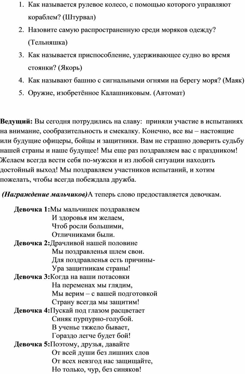 (Награждение мальчиков)А теперь слово предоставляется девочкам.