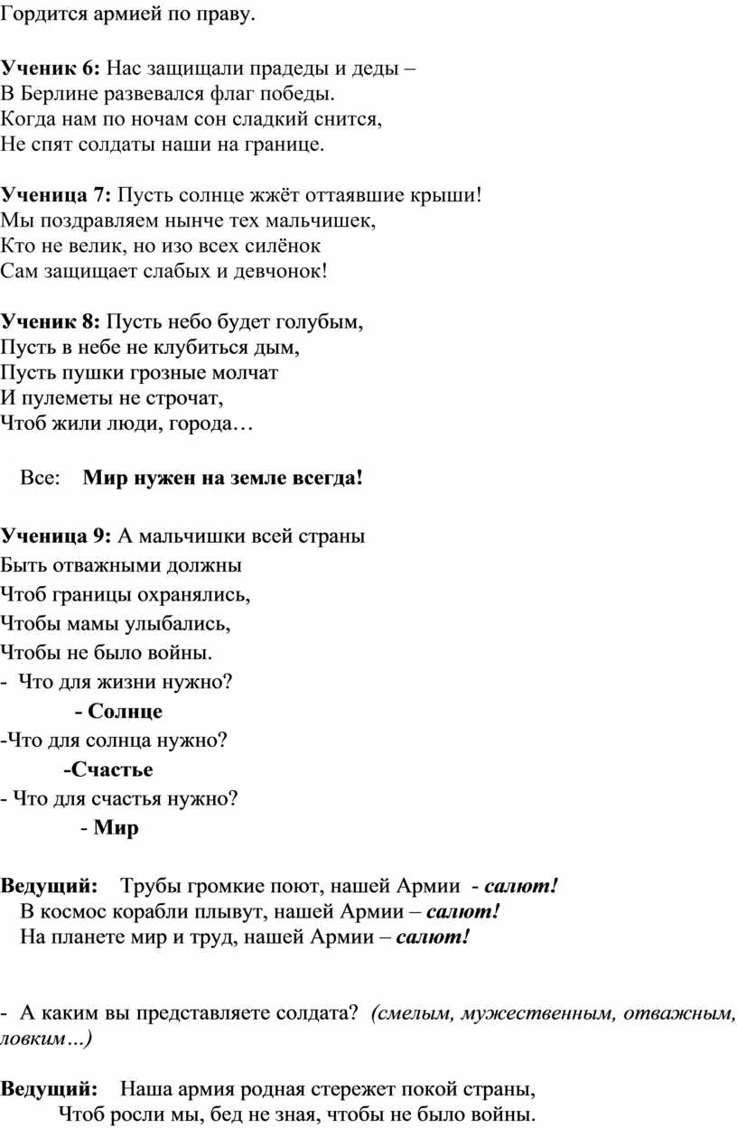 Ведущий: Наша армия родная стережет покой страны,
