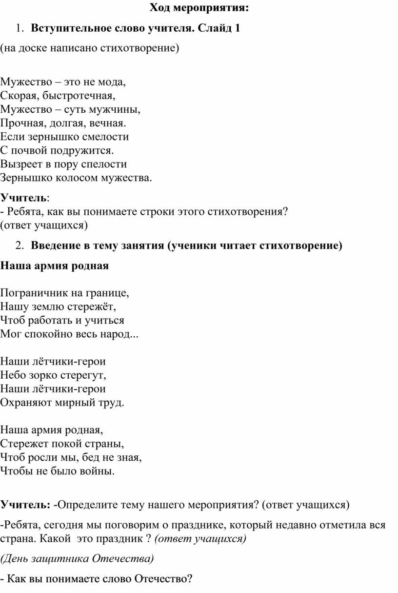 Учитель: Чтобы стать настоящим защитником Отечества, мальчики с детства должны формировать свой характер, воспитывать в себе все эти качества.