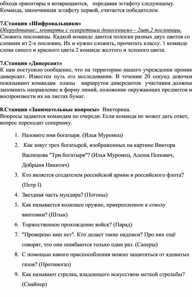 8.Станция «Занимательные вопросы» Викторина.