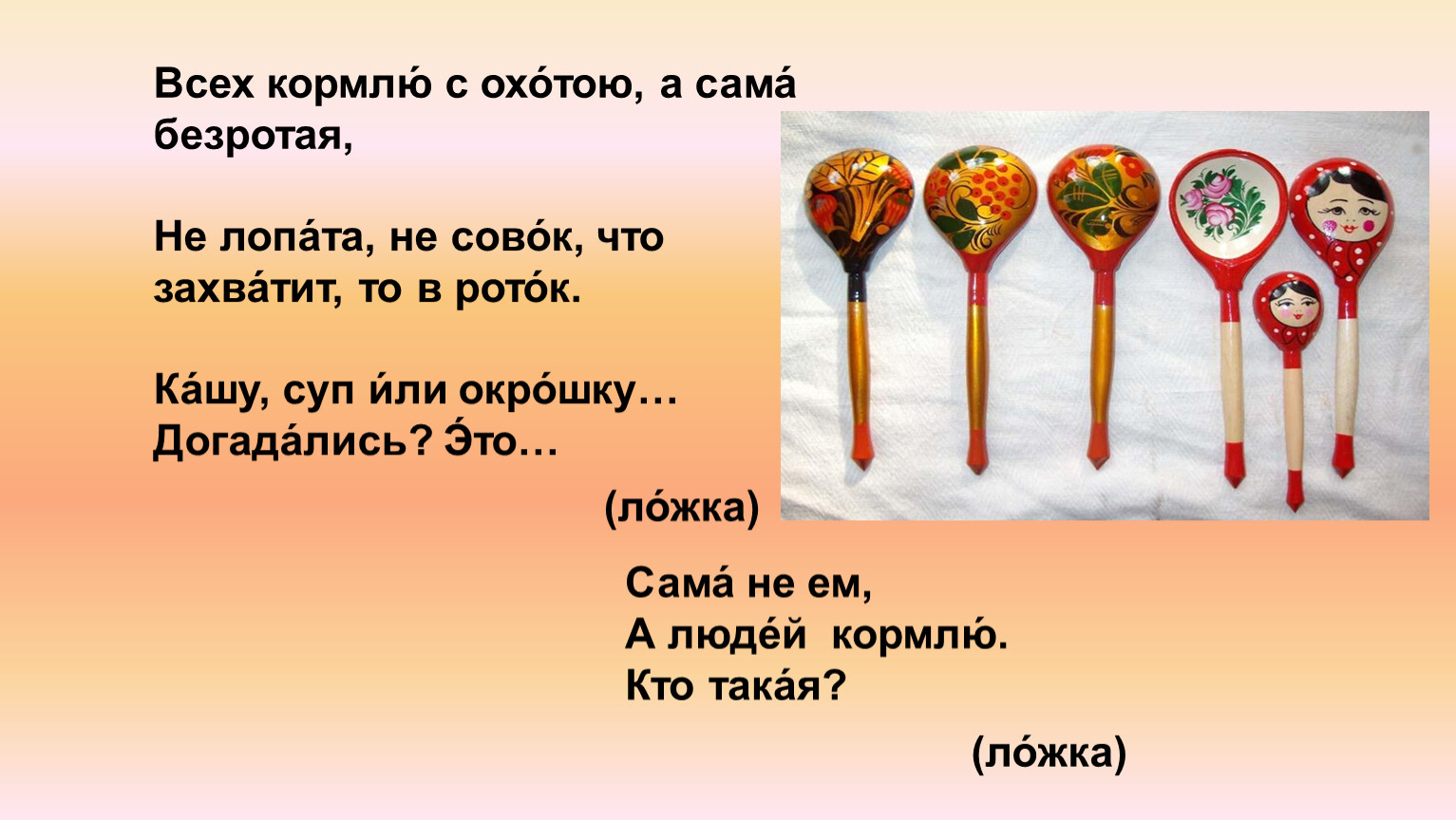 Вся́кая ло́жка на Руси́ име́ла своё назва́ние.