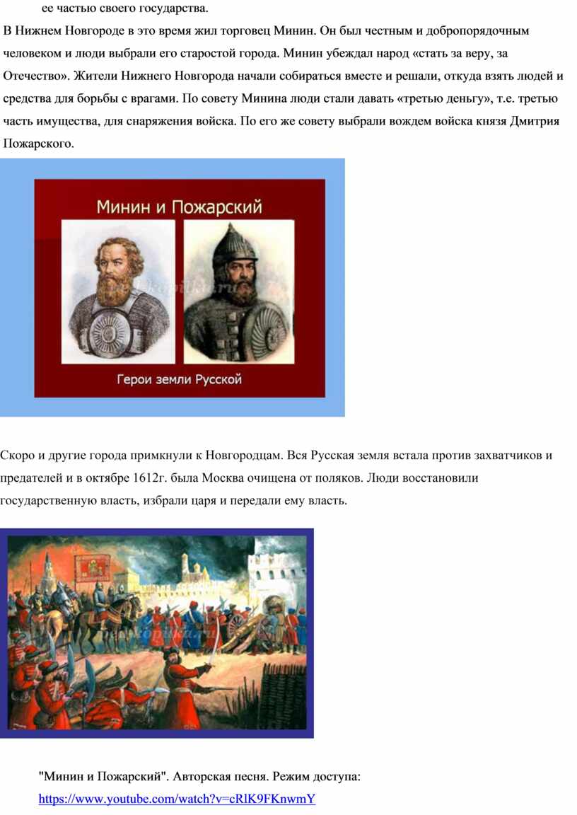 2."Минин и Пожарский". Авторская песня. Режим доступа: https://www.youtube.com/watch?v=cRlK9FKnwmY
