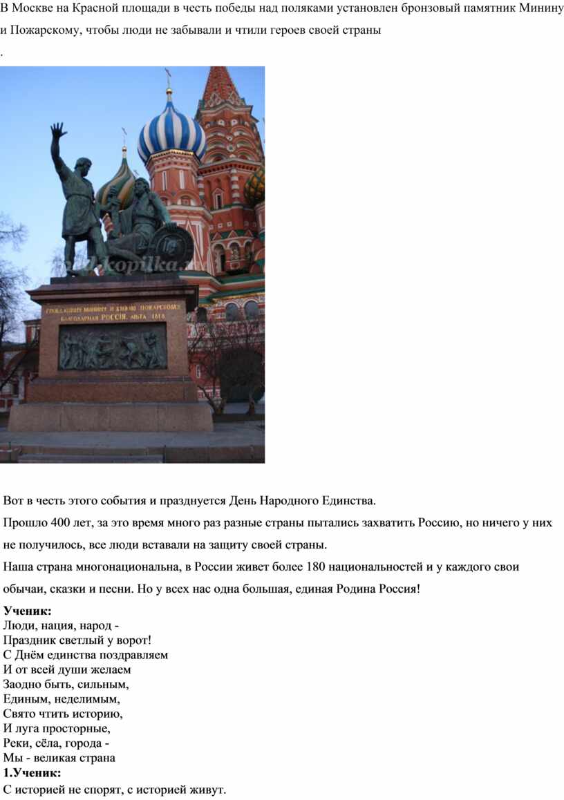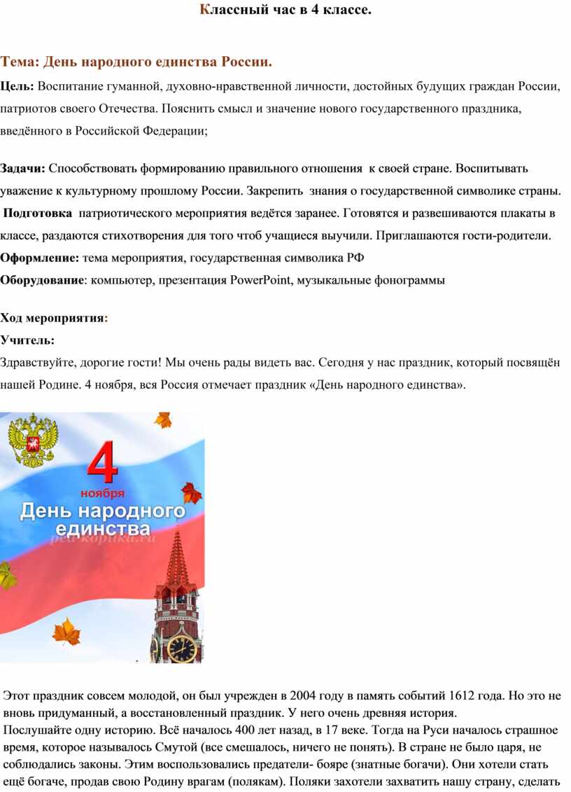 который посвящён нашей Родине. 4 ноября, вся Россия отмечает праздник «День