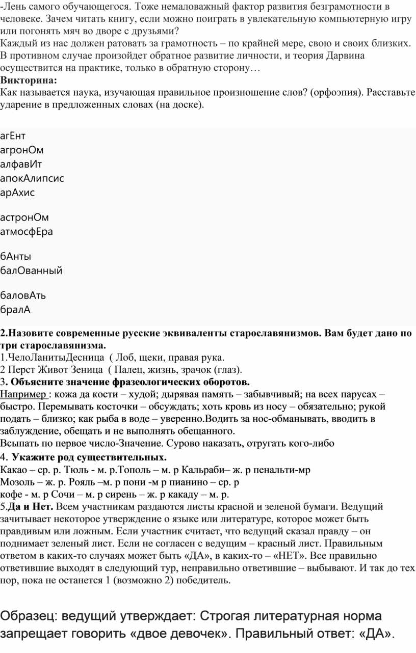 Викторина 1 Нормы языка (орфоэпия, лексика, фразеология, грамматика)