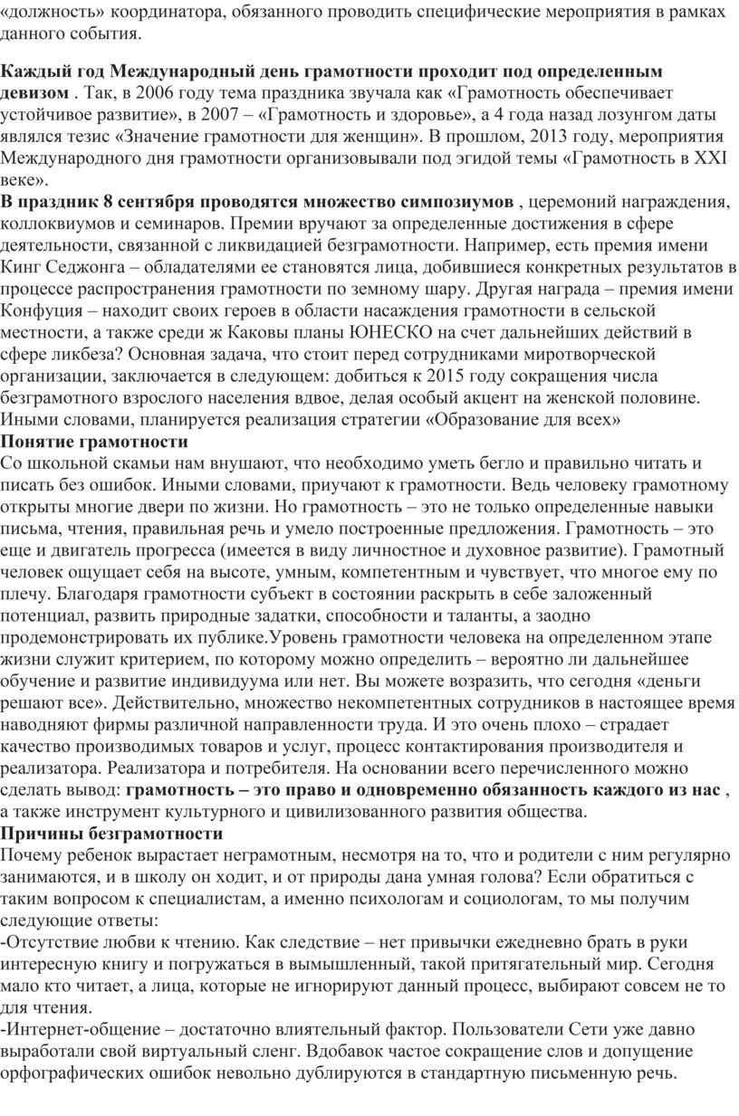 1.познакомить обучающихся с историей возникновения праздника «День грамотности»;