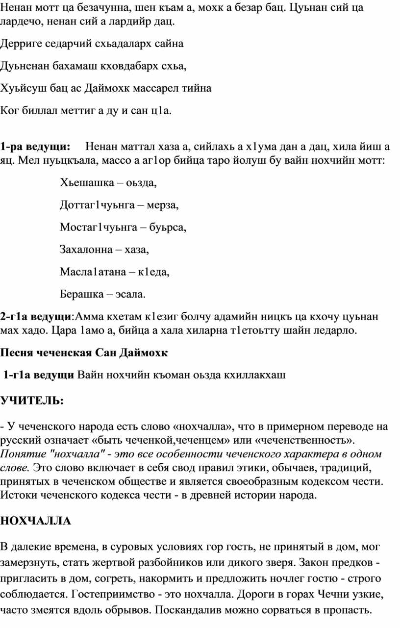 1-ра ведущи: Ненан маттал хаза а, сийлахь а х1ума дан а дац, хила йиш а