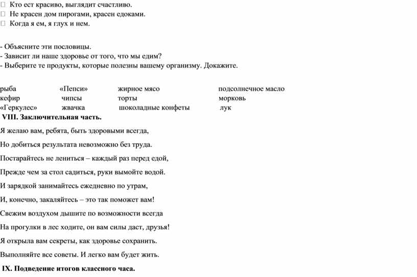 IX. Подведение итогов классного часа.