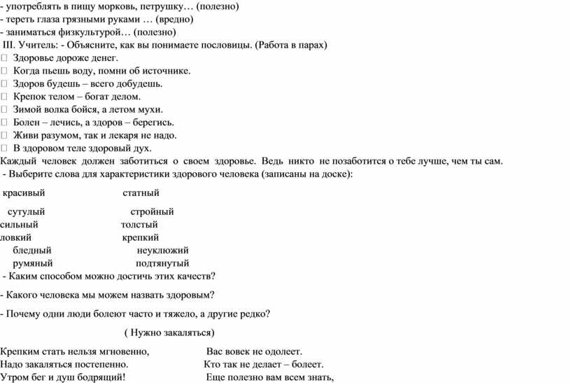 - Выберите слова для характеристики здорового человека (записаны на доске):