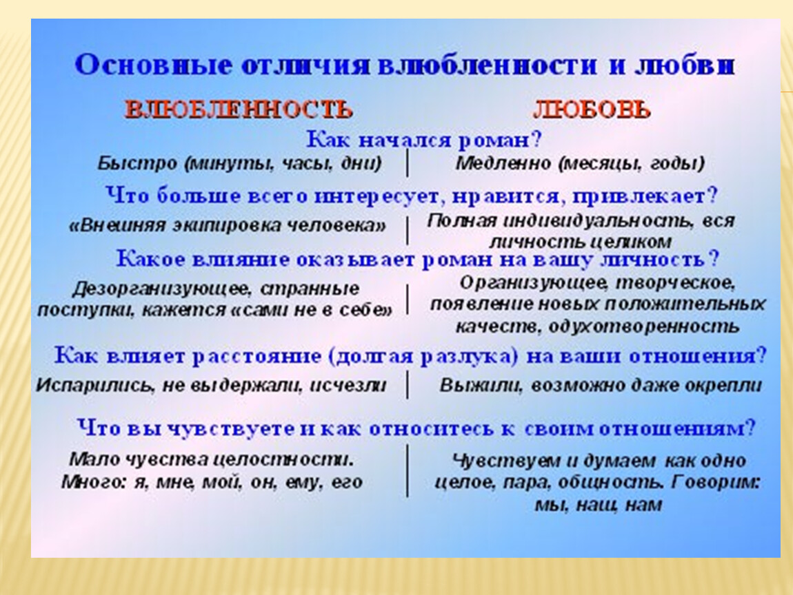 3. Отличие любви от влюбленности
