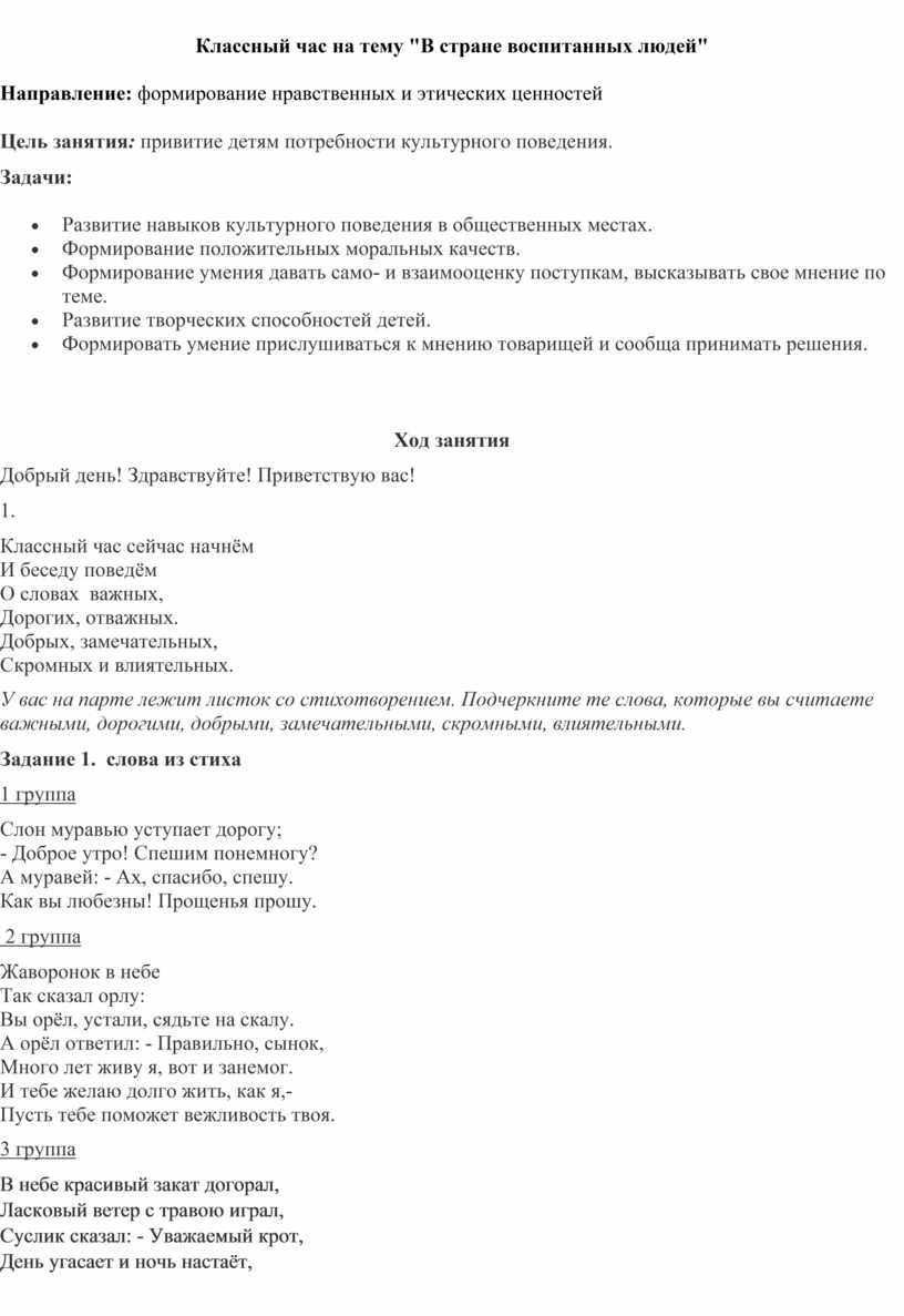 Классный час на тему "В стране воспитанных людей"