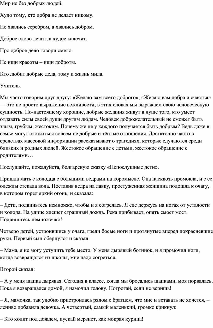 словом «Доброта — это…» (затем заслушивают ответы спикеров).