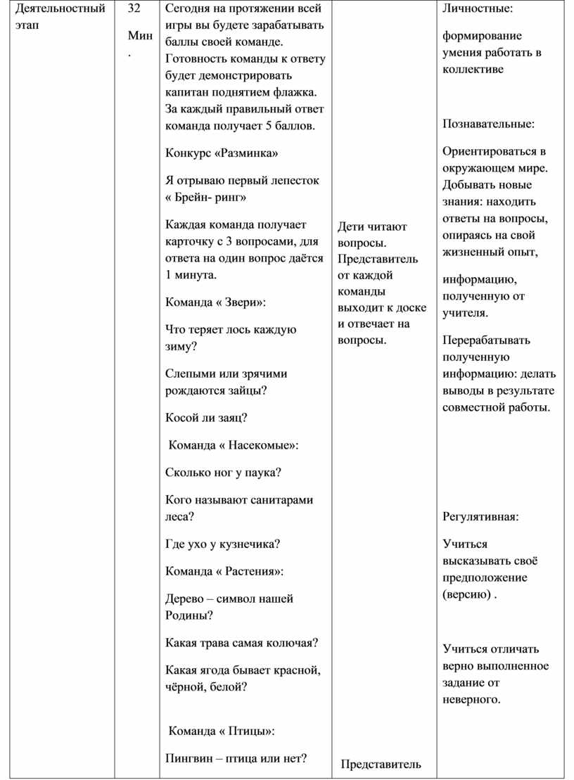 Задания и вопросы, направленные на формирование УУД, присутствовали на всех этапах мероприятия. Этапы мероприятия последовательны и взаимосвязаны, прослеживается плавный переход от этапа к этапу.
