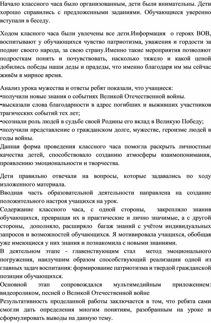 Анализ урока мужества и ответы ребят показали, что учащиеся: