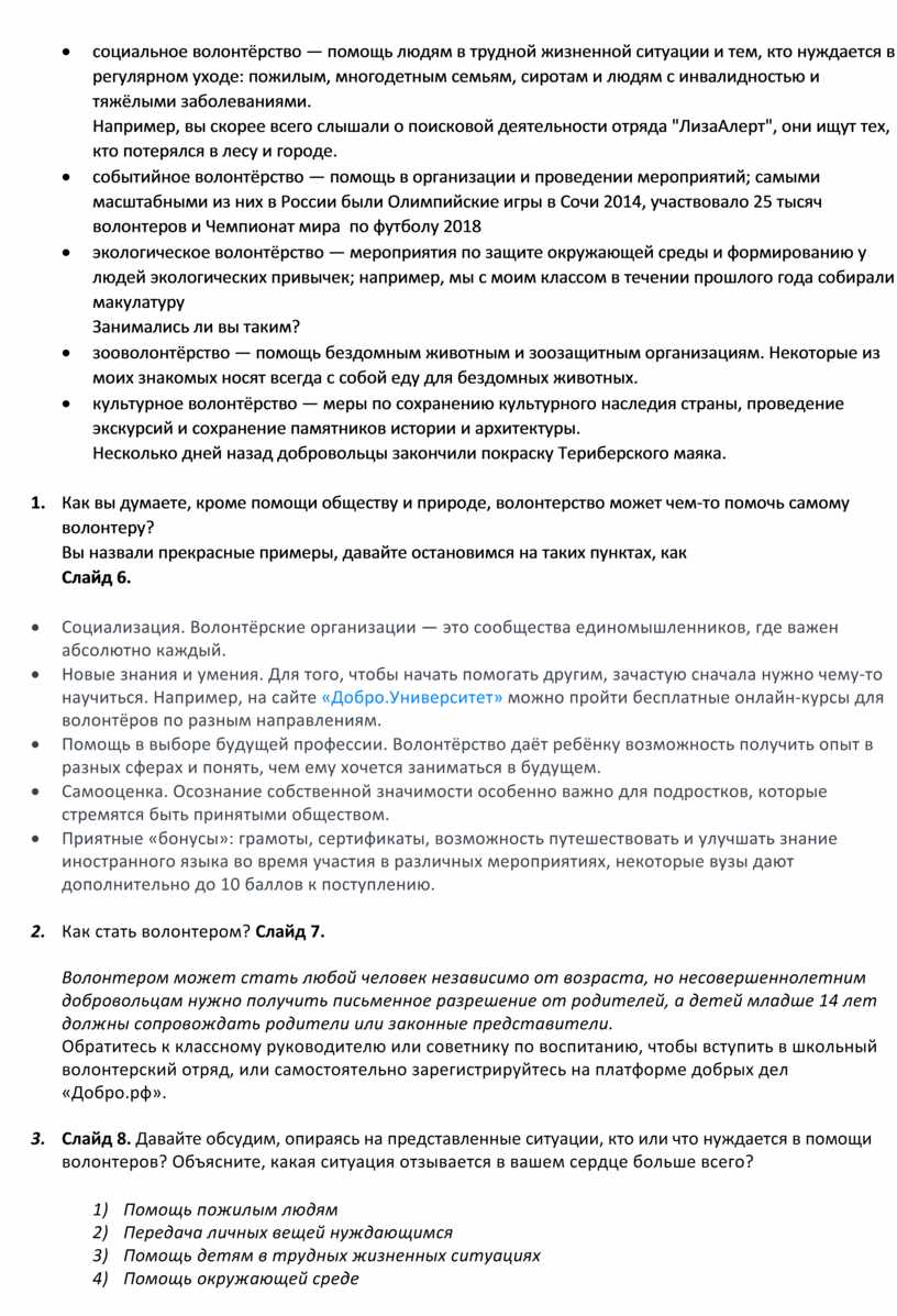 4. Давайте обсудим несколько основных видов волонтерства. Слайд 5.