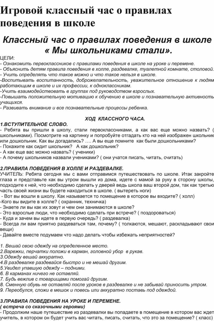 - Ознакомить первоклассников с правилами поведения в школе на уроке и перемене.
