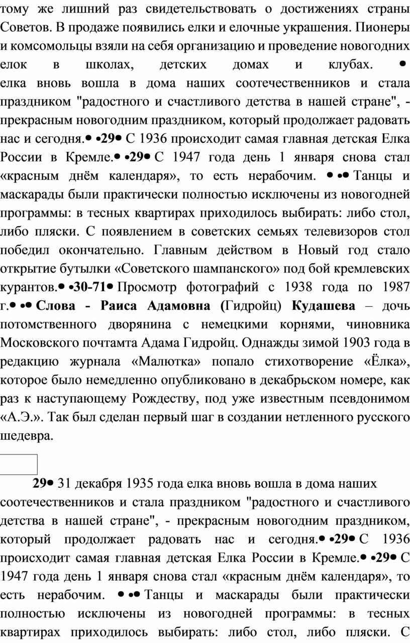 31 декабря 1935 года елка вновь вошла в дома наших соотечественников и стала праздником "радостного и счастливого детства в нашей стране", - прекрасным новогодним праздником, который продолжает радовать нас и сегодня. |