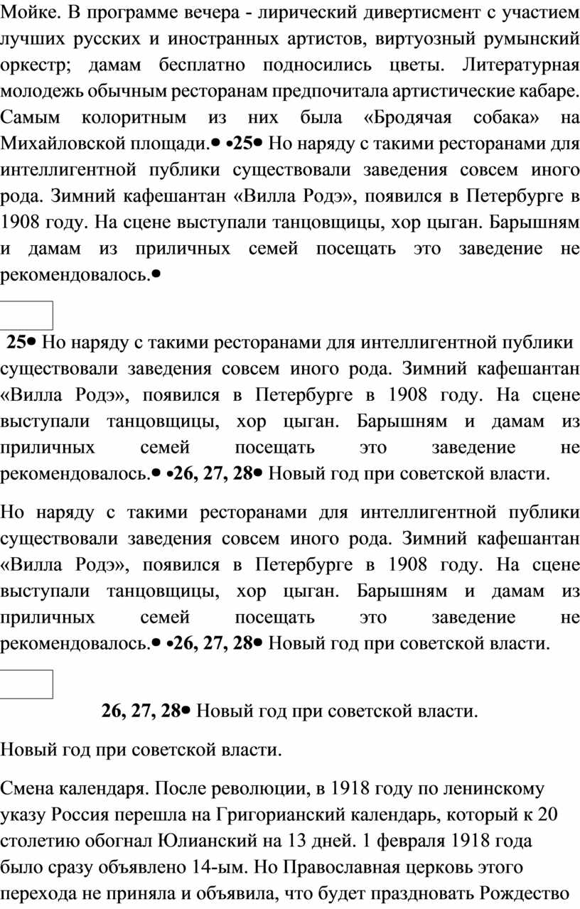 Но наряду с такими ресторанами для интеллигентной публики существовали заведения совсем иного рода. Зимний кафешантан «Вилла Родэ», появился в Петербурге в 1908 году. На сцене выступали танцовщицы, хор цыган. Барышням и дамам из приличных семей посещать это заведение не рекомендовалось. |