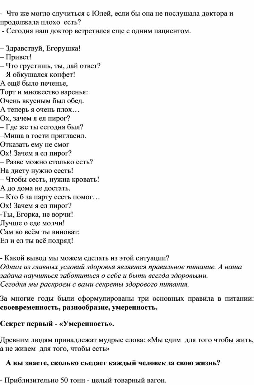 Древним людям принадлежат мудрые слова: «Мы едим для того чтобы жить, а не живем для того, чтобы есть»