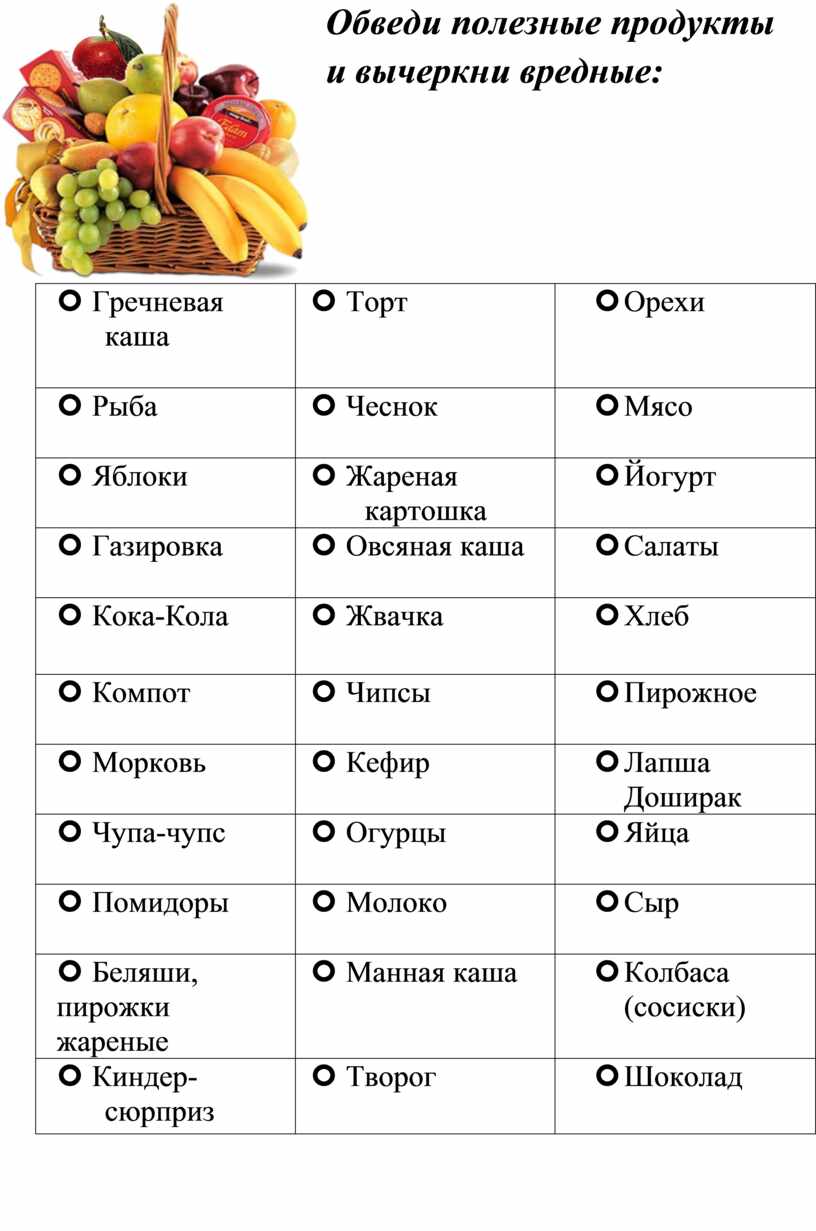 Обведи полезные продукты и вычеркни