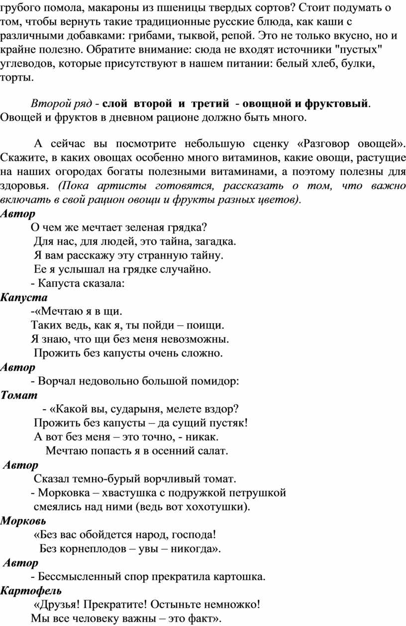 - ширма и куклы для сценки «Разговор овощей»;