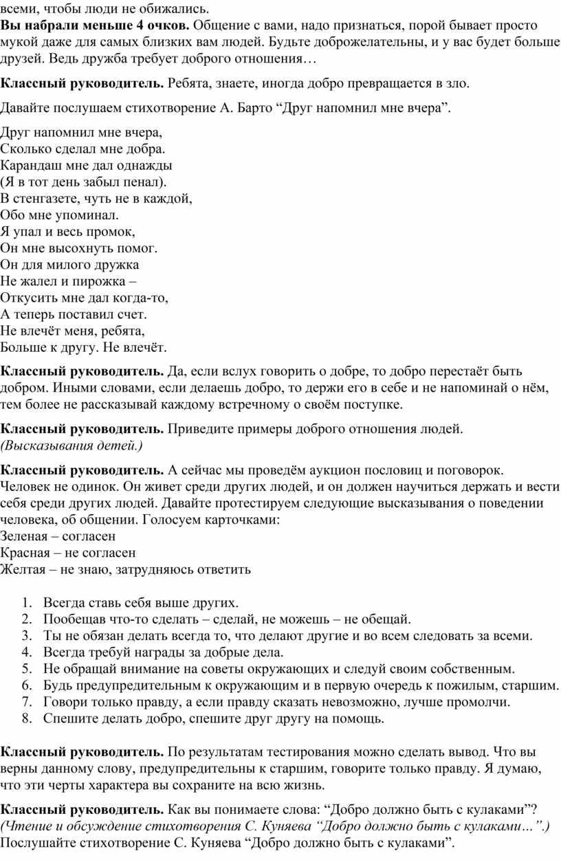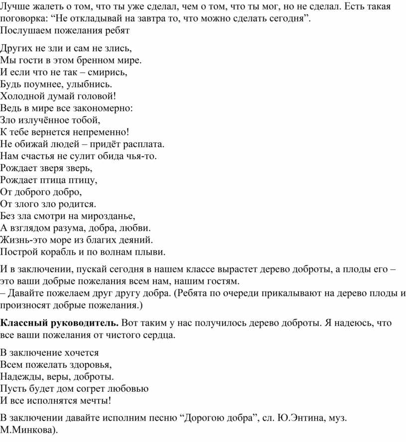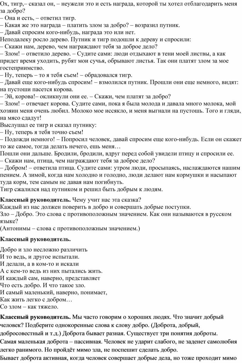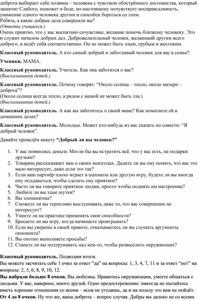 Классный руководитель. Молодцы. Может кто-нибудь из вас сказать по совести: “Я добрый человек”.