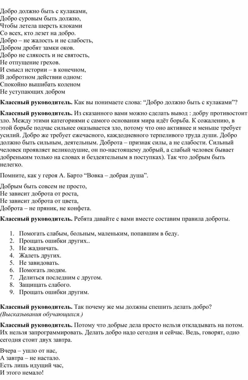 Классный руководитель. Как вы понимаете слова: “Добро должно быть с кулаками”?