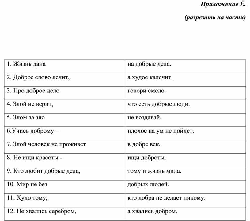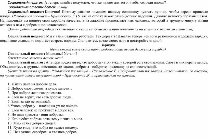 Социальный педагог: А теперь представьте, что доброта - это наука, у которой есть свои законы. Слова в них перепутались. Объединитесь в группы, восстановите законы доброты - соберите пословицу из словосочетаний.