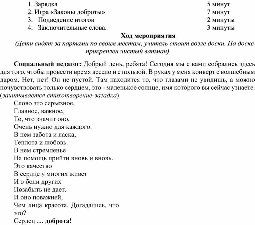 9. Игра «Законы доброты» 7 минут