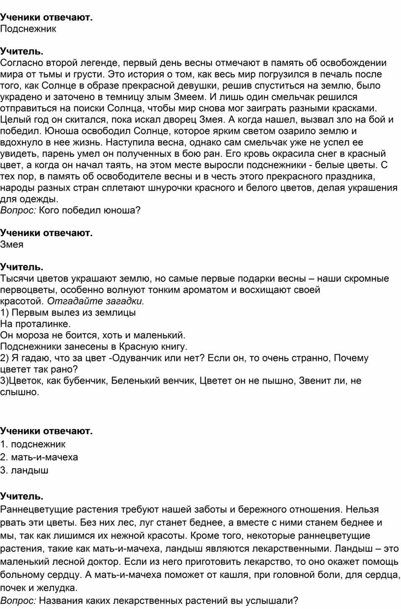 красивыми легендами. Согласно одной из них, в 1 марта на опушку леса вышла