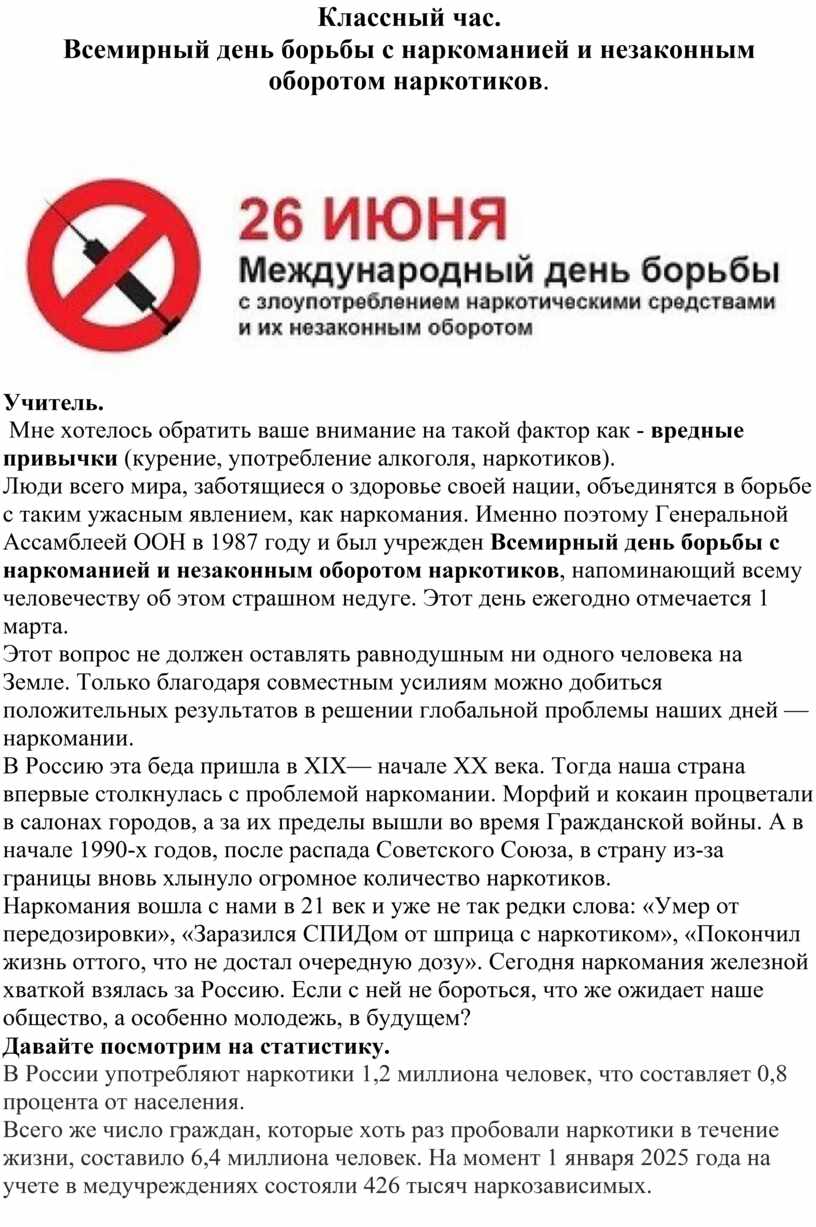 Всемирный день борьбы с наркоманией и незаконным оборотом наркотиков.