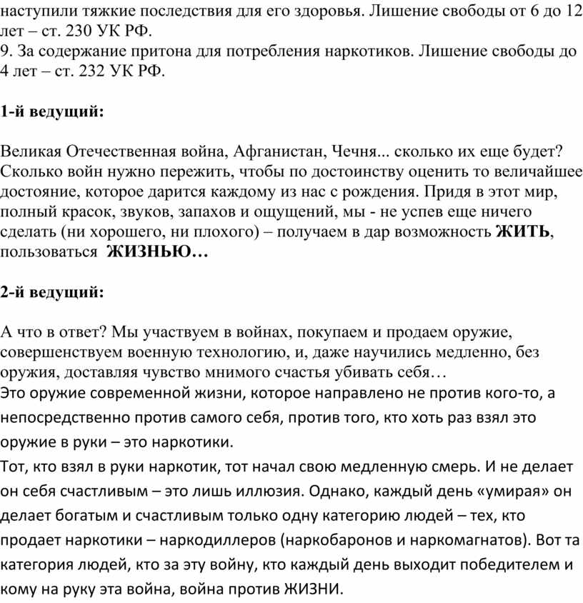 9. За содержание притона для потребления наркотиков. Лишение свободы до 4 лет –