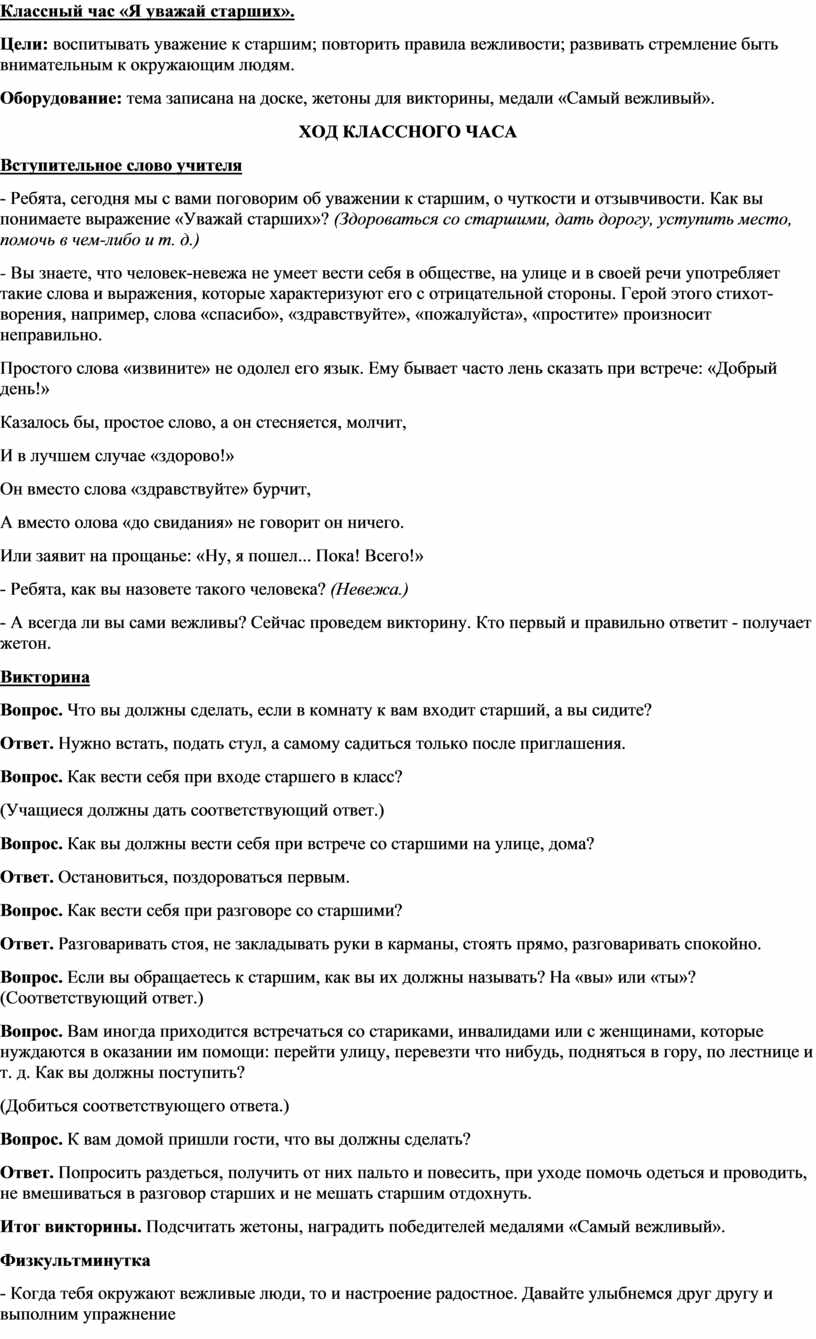Классный час «Я уважай старших».