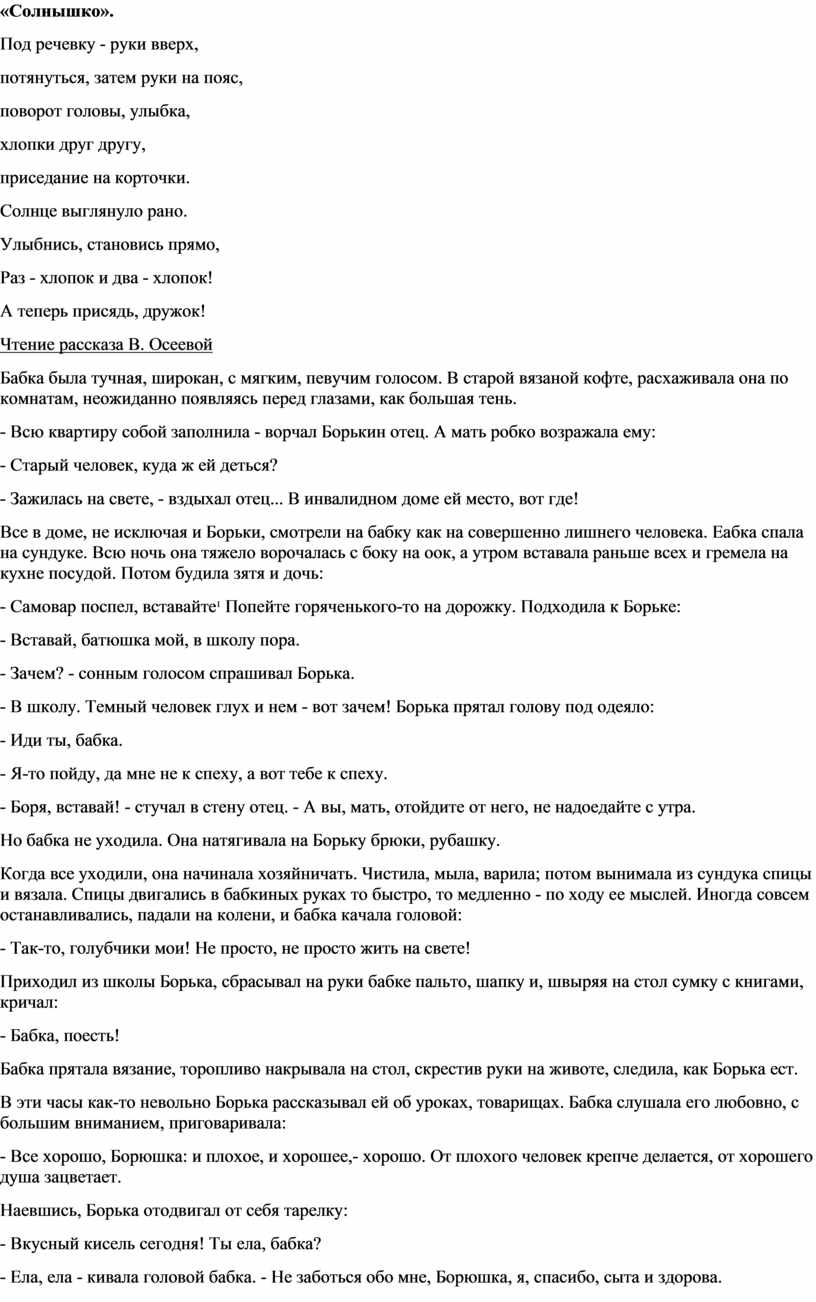 Чтение рассказа В. Осеевой