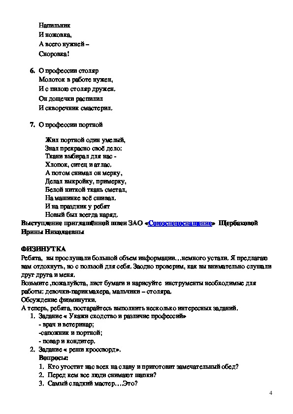 прочитают ранее подготовленные сообщения о некоторых профессиях.