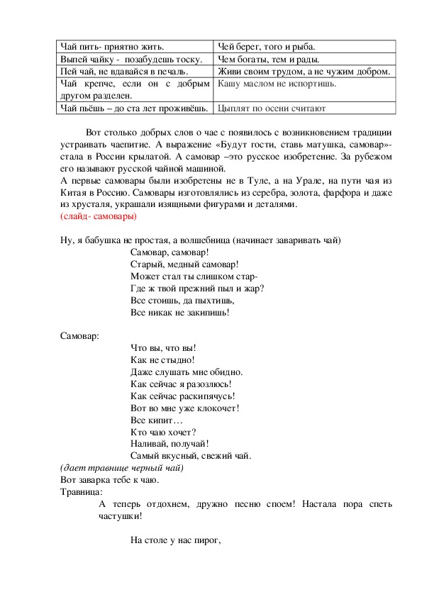 устраивать чаепитие. А выражение «Будут гости, ставь матушка, самовар»