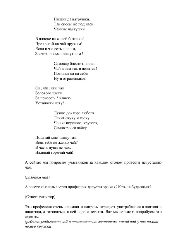 (ребята угадывают чай и отмечают на листочках какой чай у них налит –