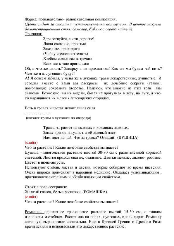 Нам идет на чай. Что за травка? Отгадай. (ДУШИЦА)