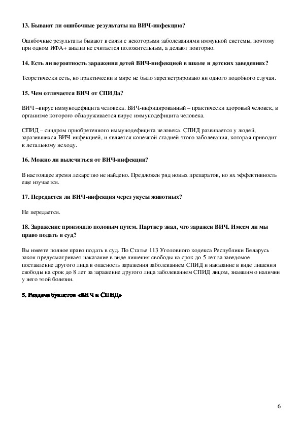 5. Раздача буклетов «ВИЧ и СПИД»
