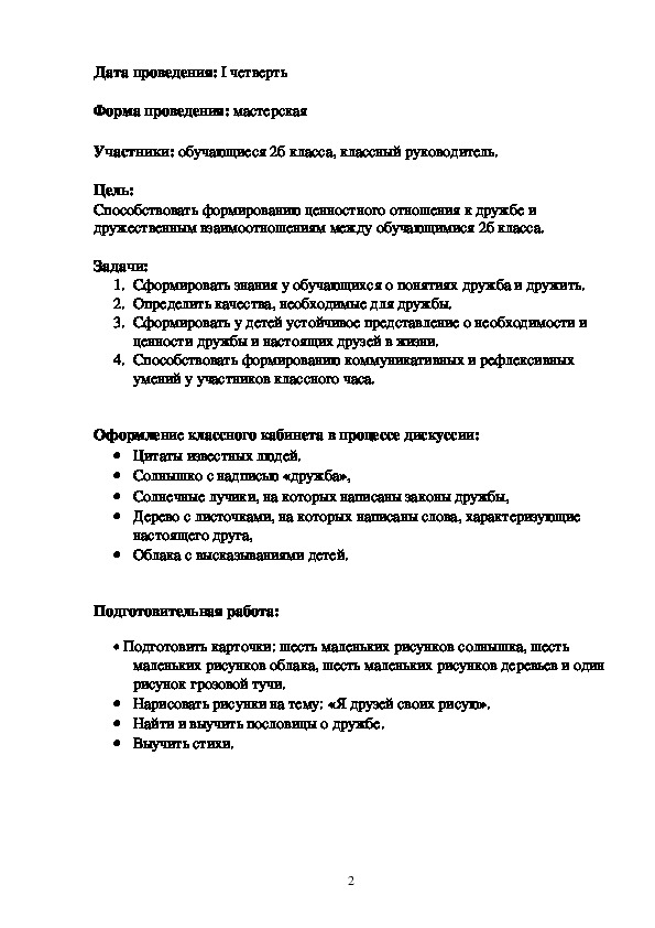 дружественным взаимоотношениям между обучающимися 2б класса.