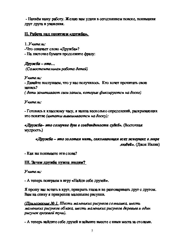 II . Работа над понятием «дружба».