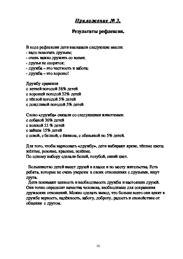 ( Результаты рефлексии в приложении № 3