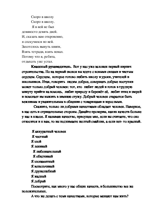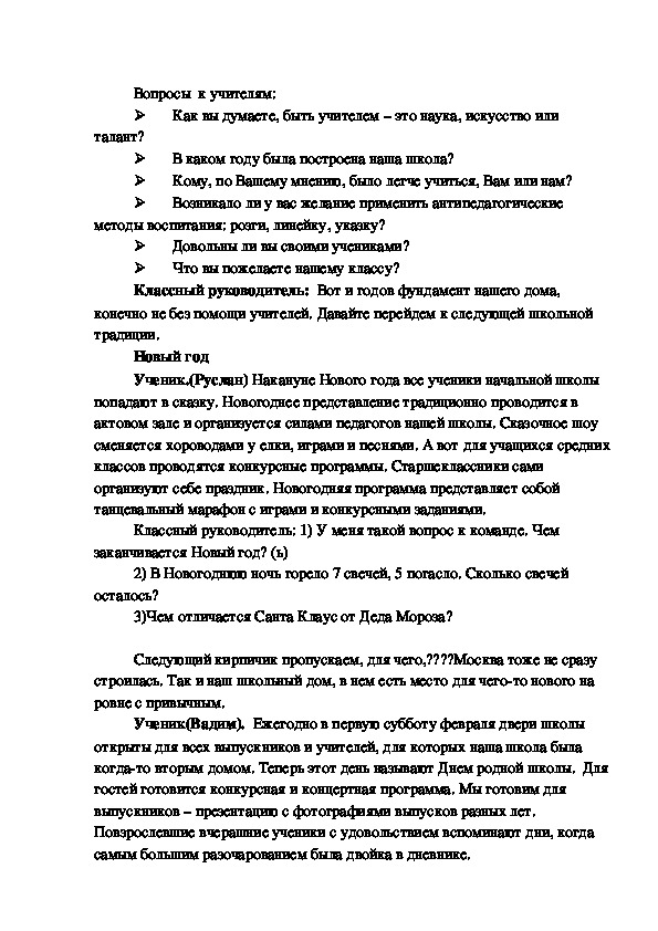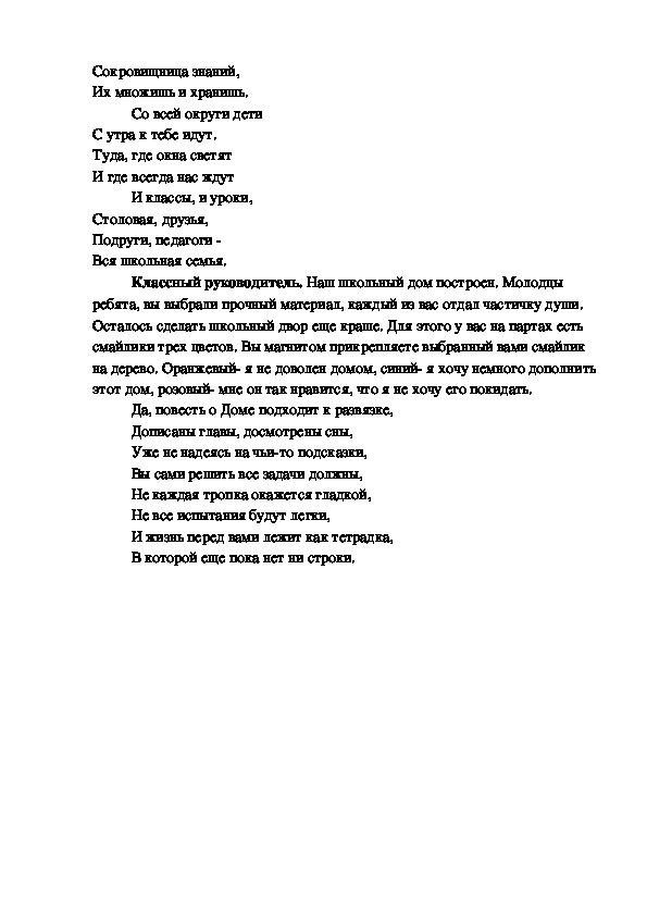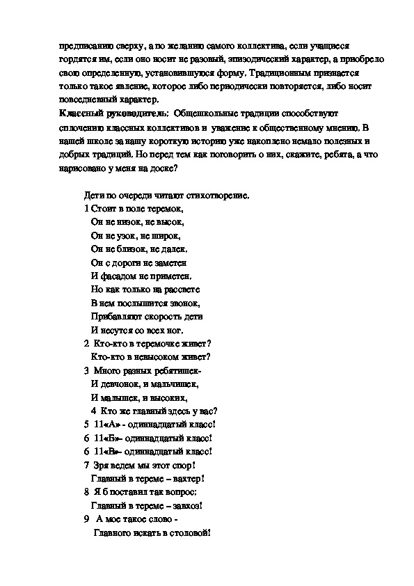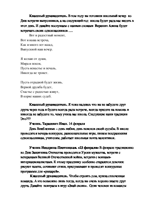 Начало со вступительного слова классного руководителя.