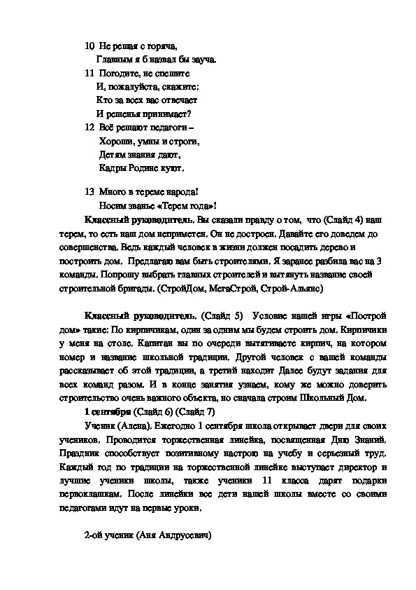 Классный руководитель. Наш школьный дом построен. Молодцы