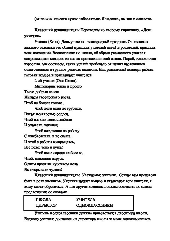 Классный руководитель. Говорят, хороший строитель никогда не