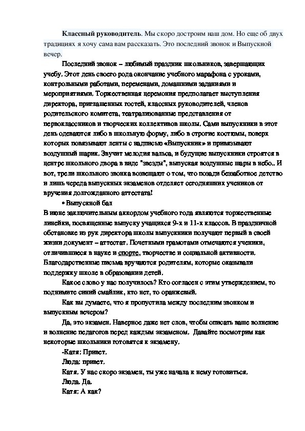традициях я хочу сама вам рассказать. Это последний звонок и Выпускной