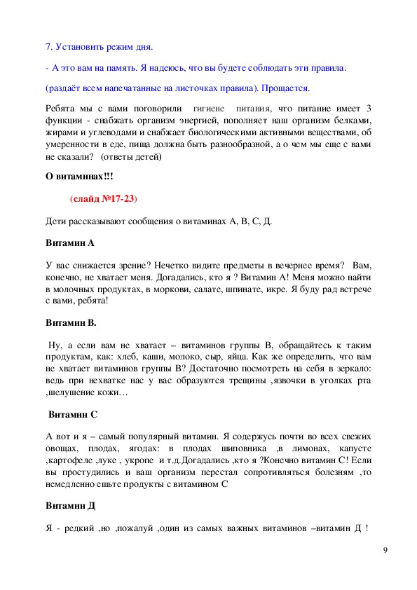 Дети рассказывают сообщения о витаминах А, В, С, Д.